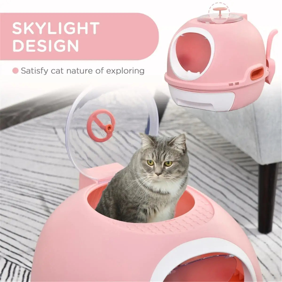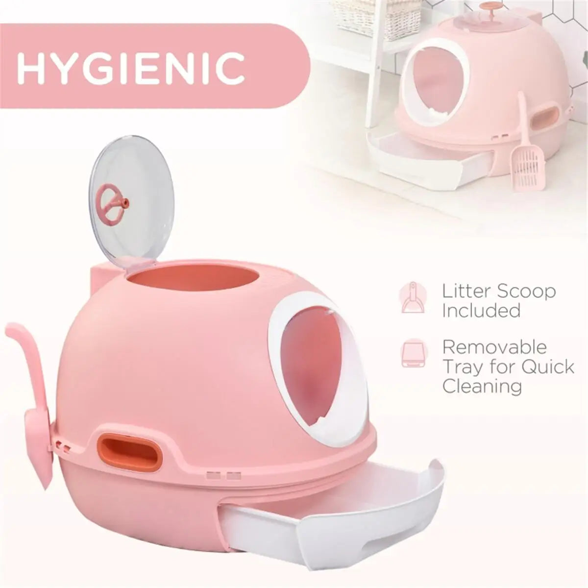 - - Dome shape prevents litter from falling out and comes with a scoop attached to the side